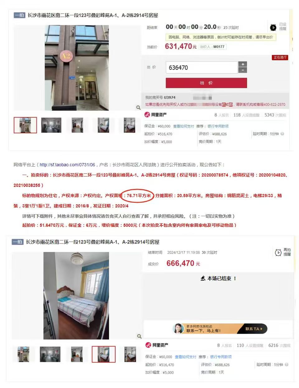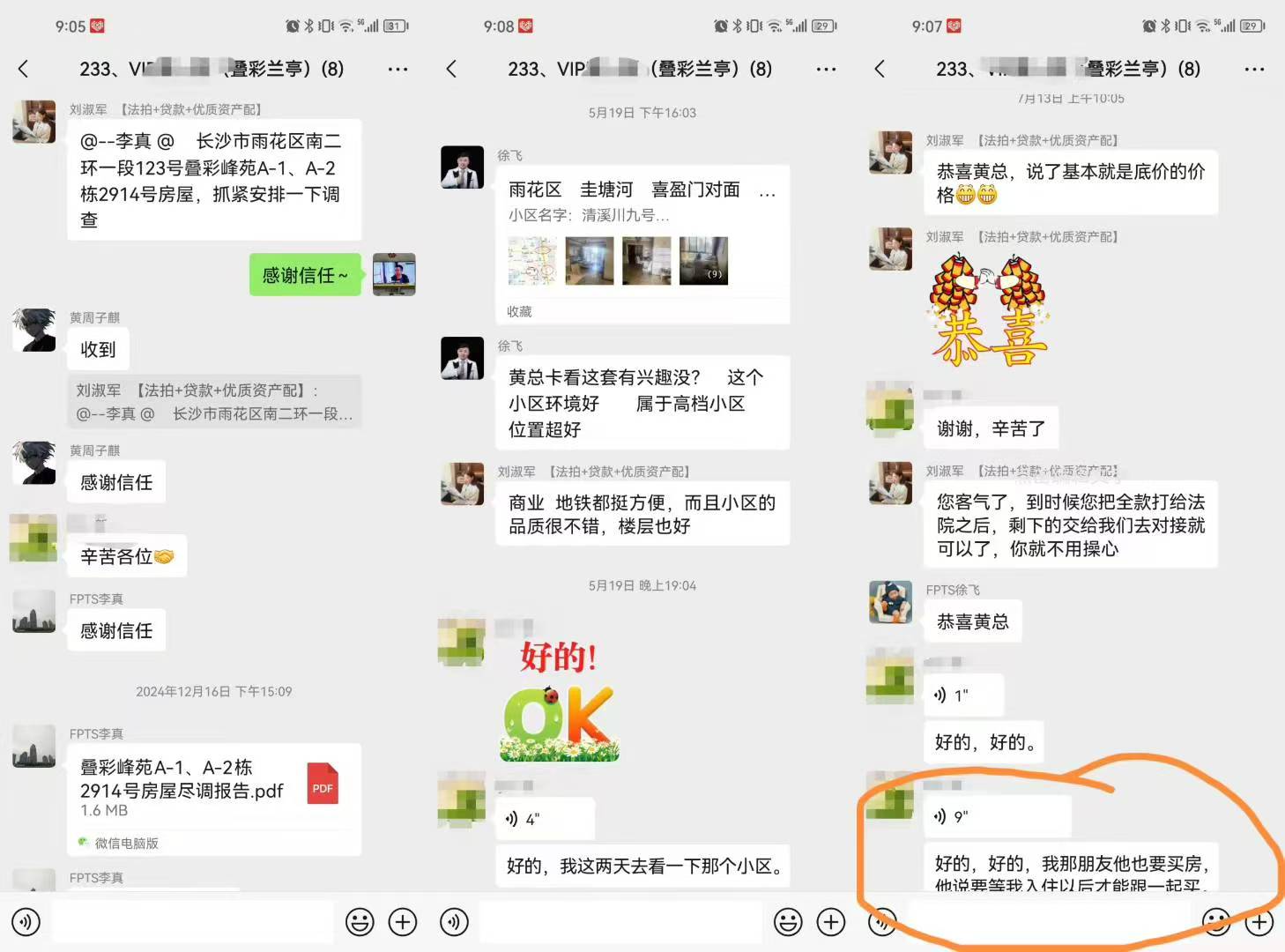 (圖7)黃總是我公司(湖南法拍網(wǎng)法拍房地產(chǎn)經(jīng)紀(jì)有限公司)第233個VIP客戶,去年12月簽約的,當(dāng)時就是沖著拍疊彩峰苑的2914來的(圖5),結(jié)果51萬起拍,8個人搶,拍到66萬去了,沒拍贏,然后就慢慢的又繼續(xù)看別的,看到現(xiàn)在終于又等到了這一套,還是29樓,2910,這次沒人競爭了,直接57.5萬底價拿下,比上一套便宜近9萬塊錢,真香,哈哈哈。