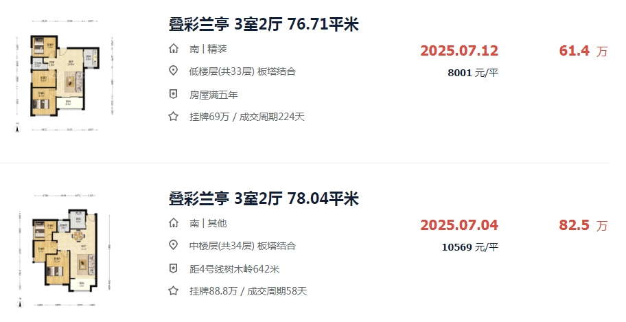 (圖3)貝殼二手房最近的一套同戶型成交價82.5萬(對比這個撿漏25萬),就連一套低樓層的也賣了61.5萬(對比這個也撿漏幾萬),咱拍的這個樓層非常好,不是頂樓,所以撿漏十幾萬是肯定有的。