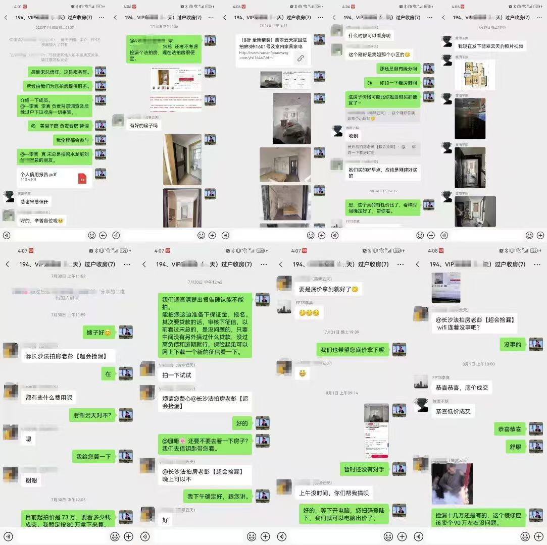 最后還是講下拍房的緣分,宋總是我們公司湖南法拍網(wǎng)法拍房地產(chǎn)經(jīng)紀(jì)有限公司第194位VIP客戶,23年年底簽約的,當(dāng)時(shí)就調(diào)查了一個(gè)碧水龍庭的房子,出了結(jié)果還沒參拍,然后就熄火了。雖然我們中間也推薦了不少房子,但是就是熄火了,就沒拍了。然后前幾天我又勾引他,說有不錯(cuò)的房子,把翡翠云天發(fā)給他看,沒想到他說他姐姐也住這里,就稍微有點(diǎn)興趣了,但是約看房約幾次也沒時(shí)間看,于是我們就去看了,拍了視頻照片給他,他看完之后又有興趣了,又把宋夫人拉進(jìn)來群里來了,然后我們又借鑰匙帶著宋夫人去看了房,然后決定拍,于是調(diào)查完就拍了,宋夫人還說希望能底價(jià)成交,我說我們也希望,結(jié)果就真的底價(jià)成交了。