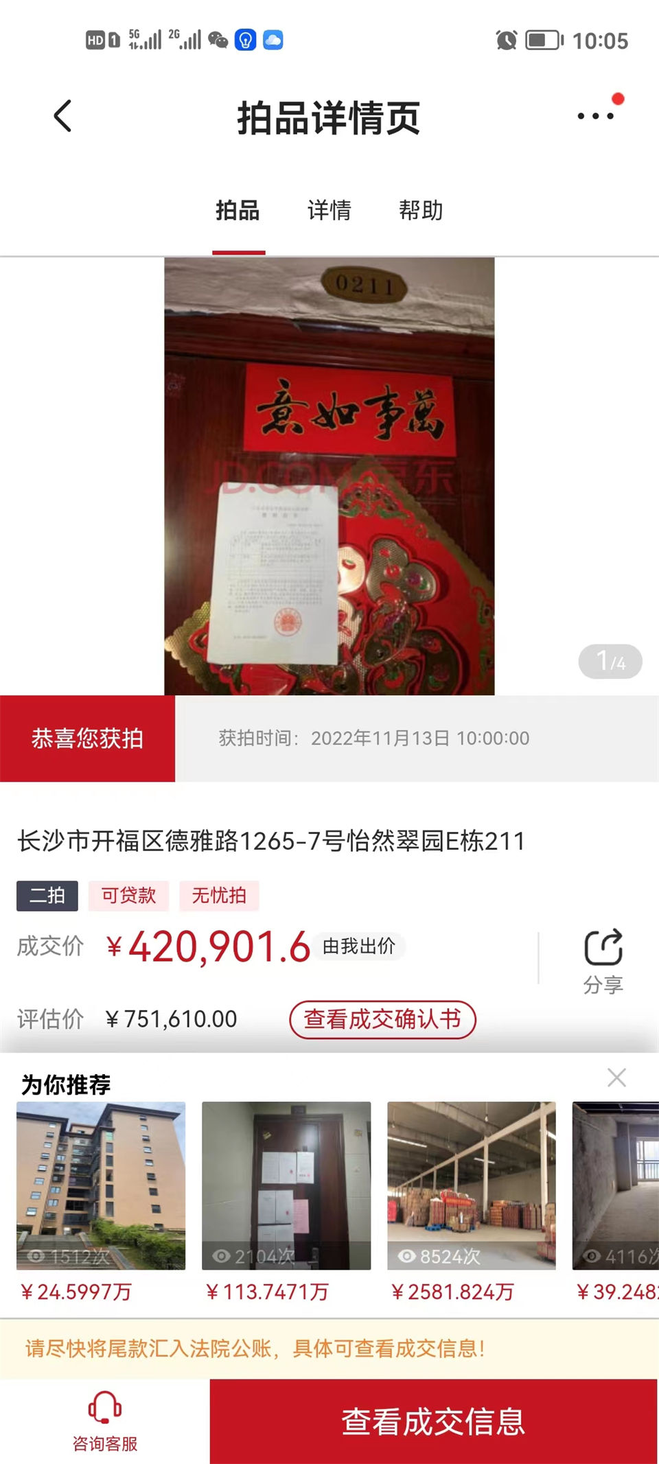 我司(湖南法拍網(wǎng)法拍房地產(chǎn)經(jīng)紀(jì)有限公司)第137位VIP客戶。
