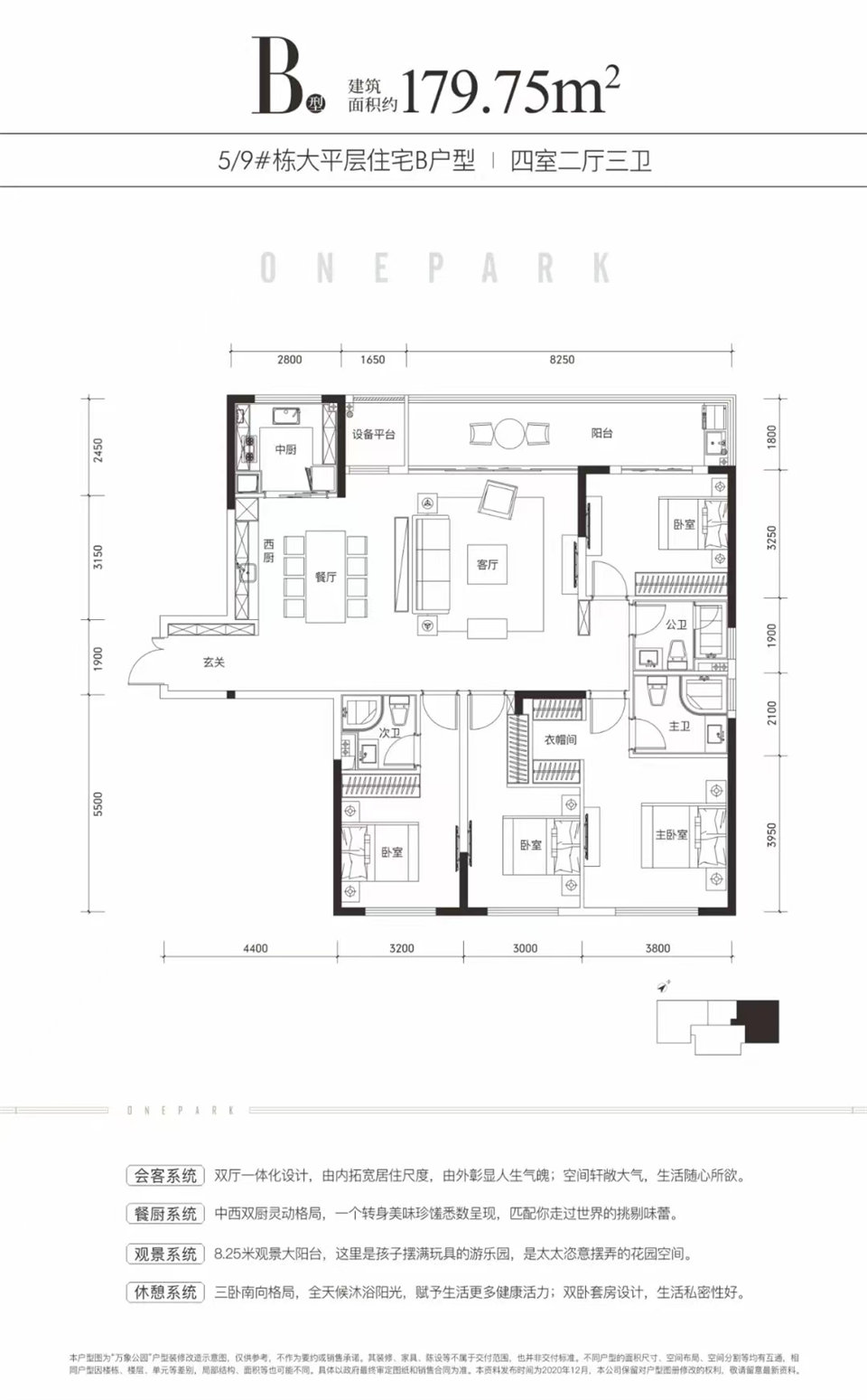 戶型:四房兩廳三衛(wèi)中西廚+8.25米觀山景大陽臺+設(shè)備間